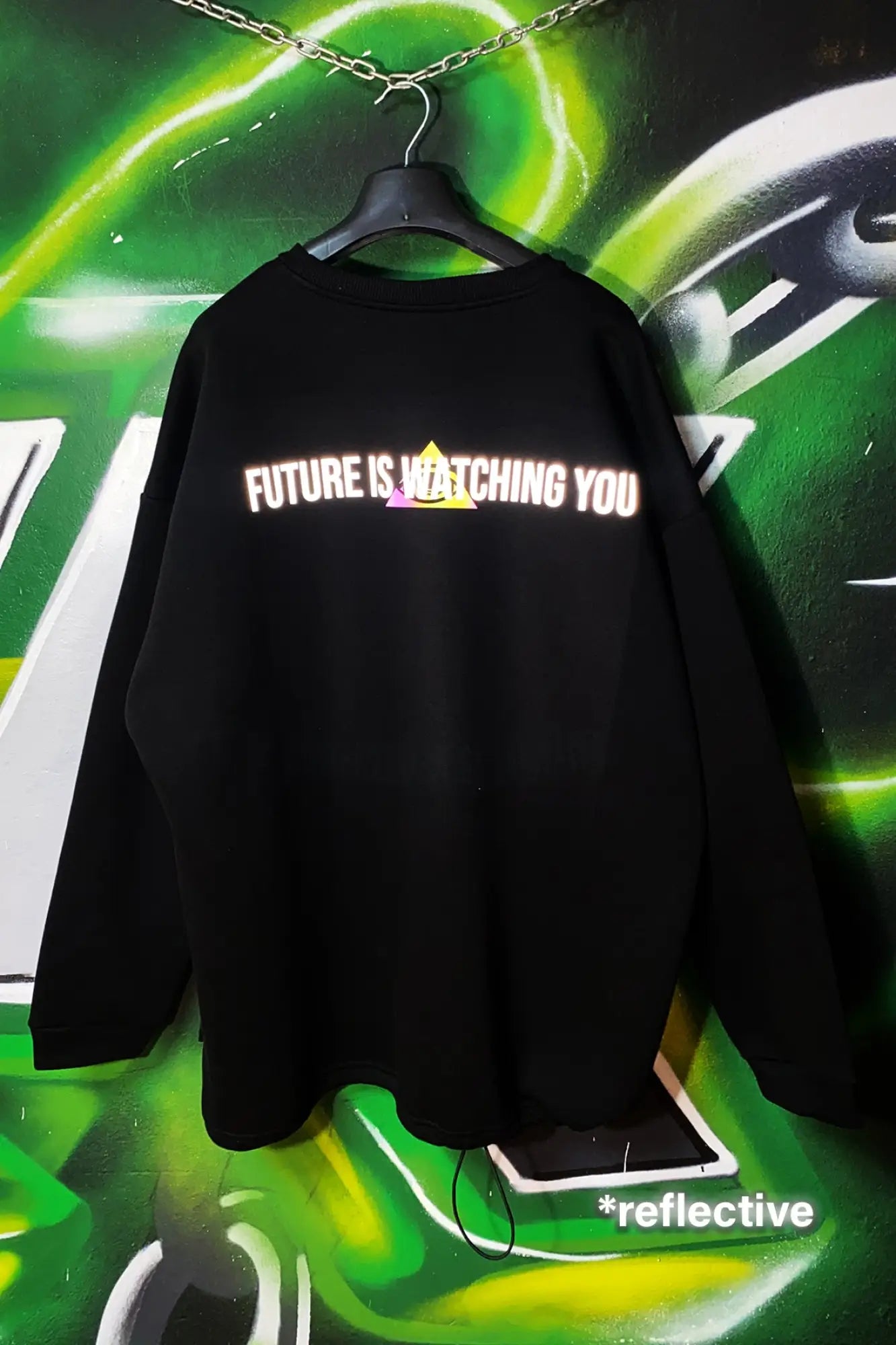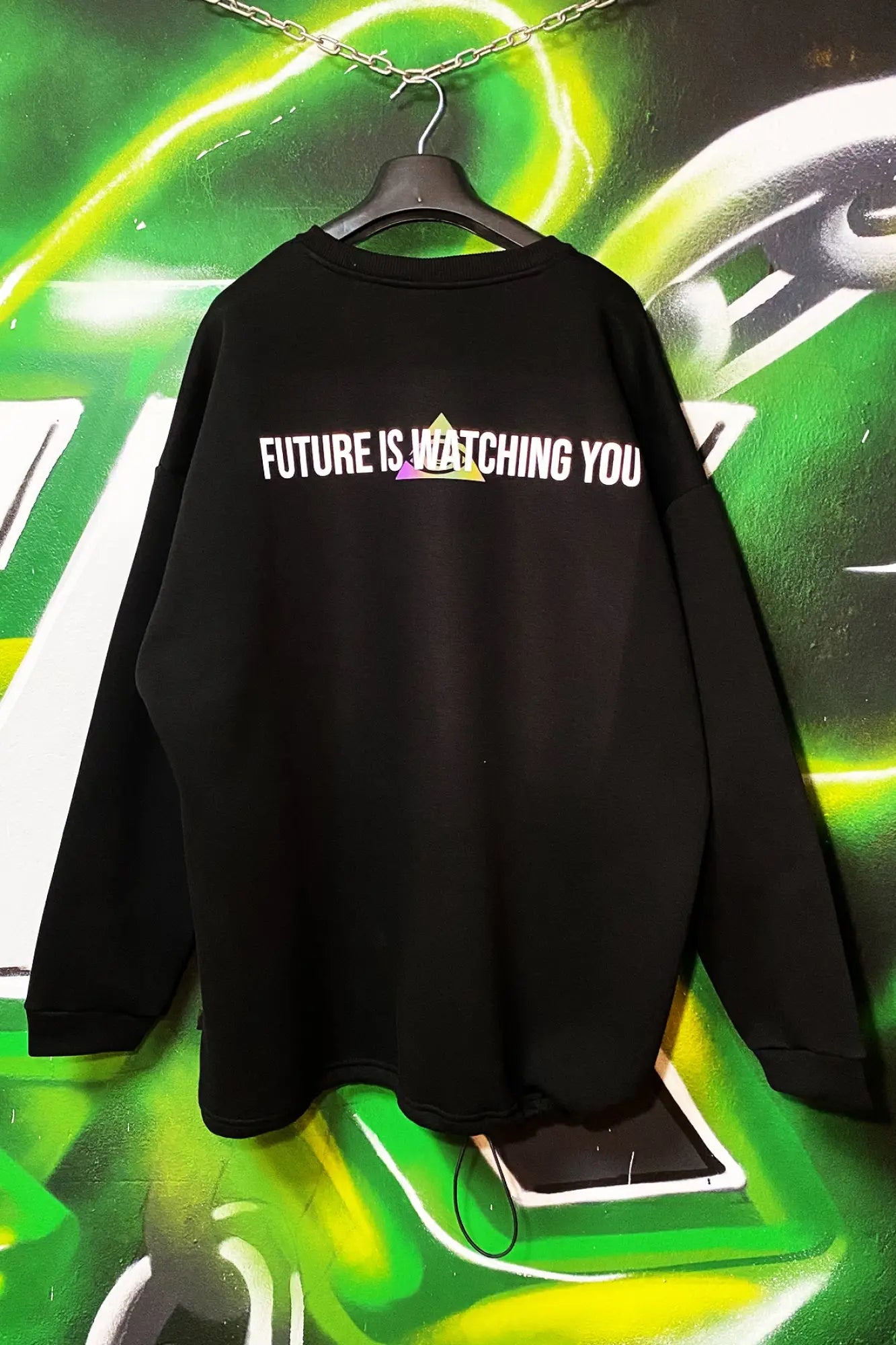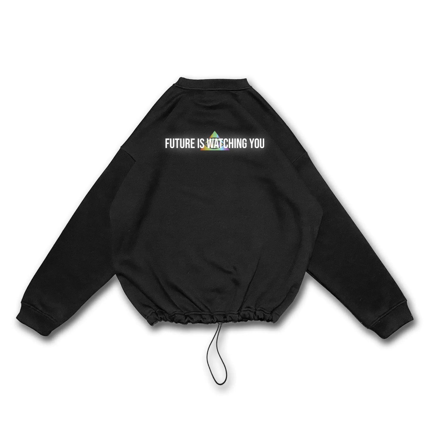 Unisex Siyah Oversize Sweatshirt 'FUTURE IS WATCHING YOU'