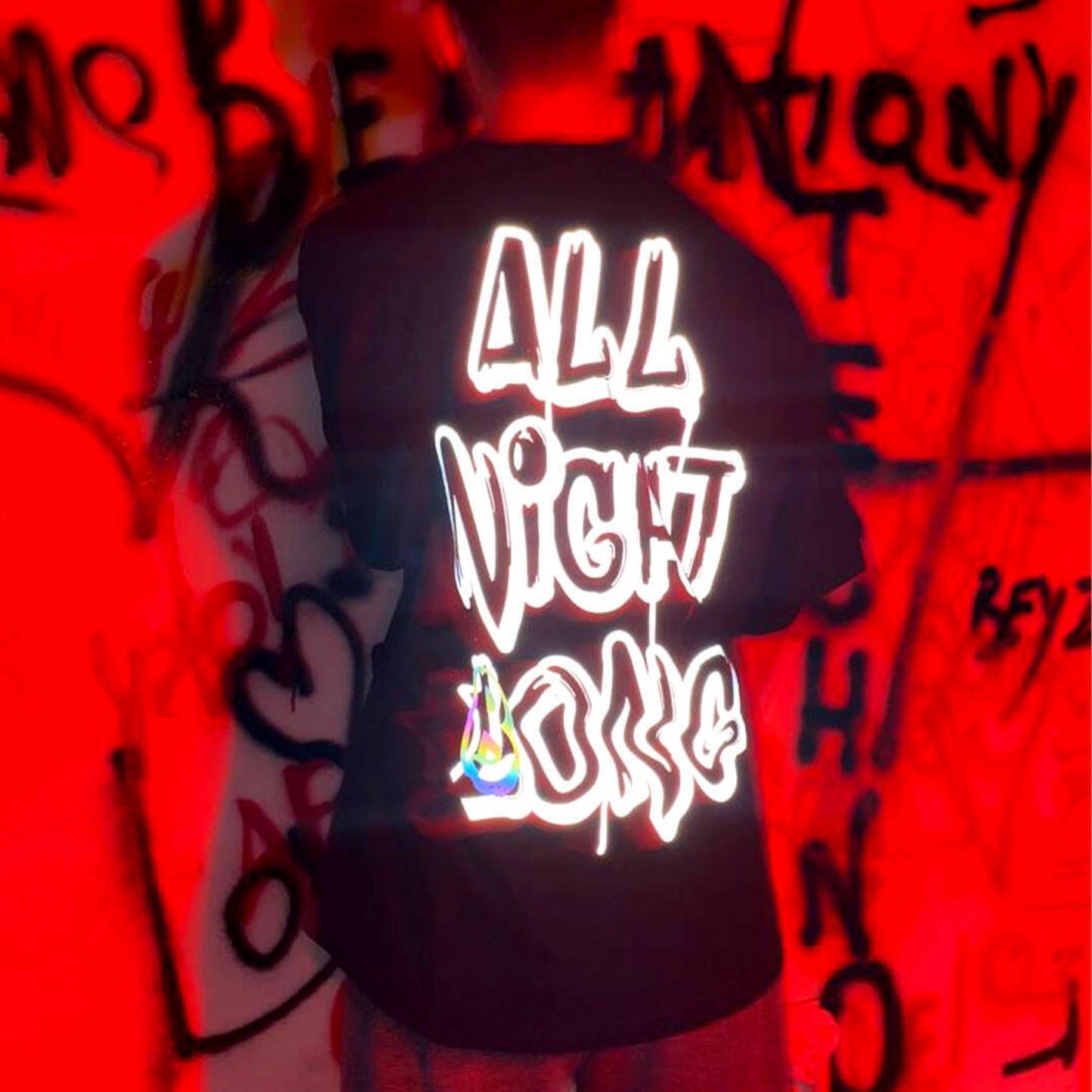 OVERSIZE BLACK T-SHIRT 'ALL NIGHT BLONG' REFLECTIVE