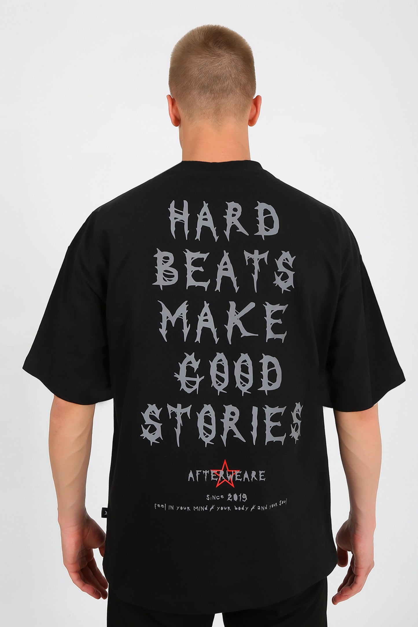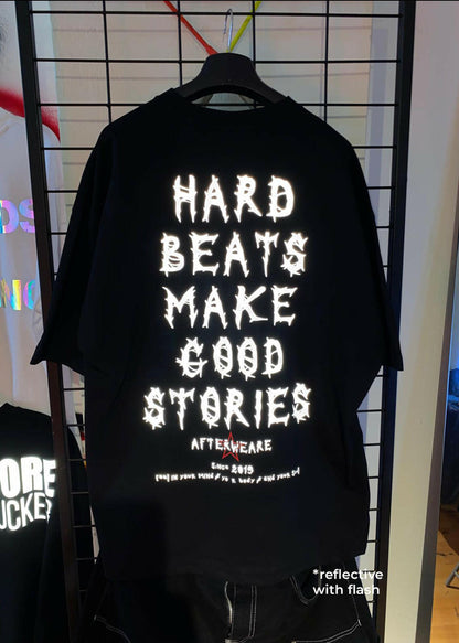 Oversize Siyah Tişört 'Hard Beats Make Good Stories'
