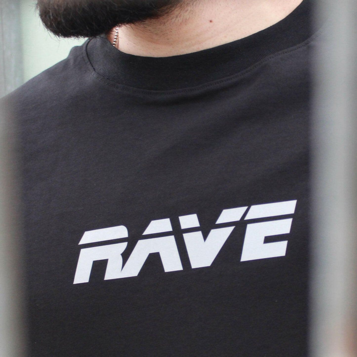 OVERSIZED BLACK T-SHIRT 'RAVE' REFLECTIVE Speak Front