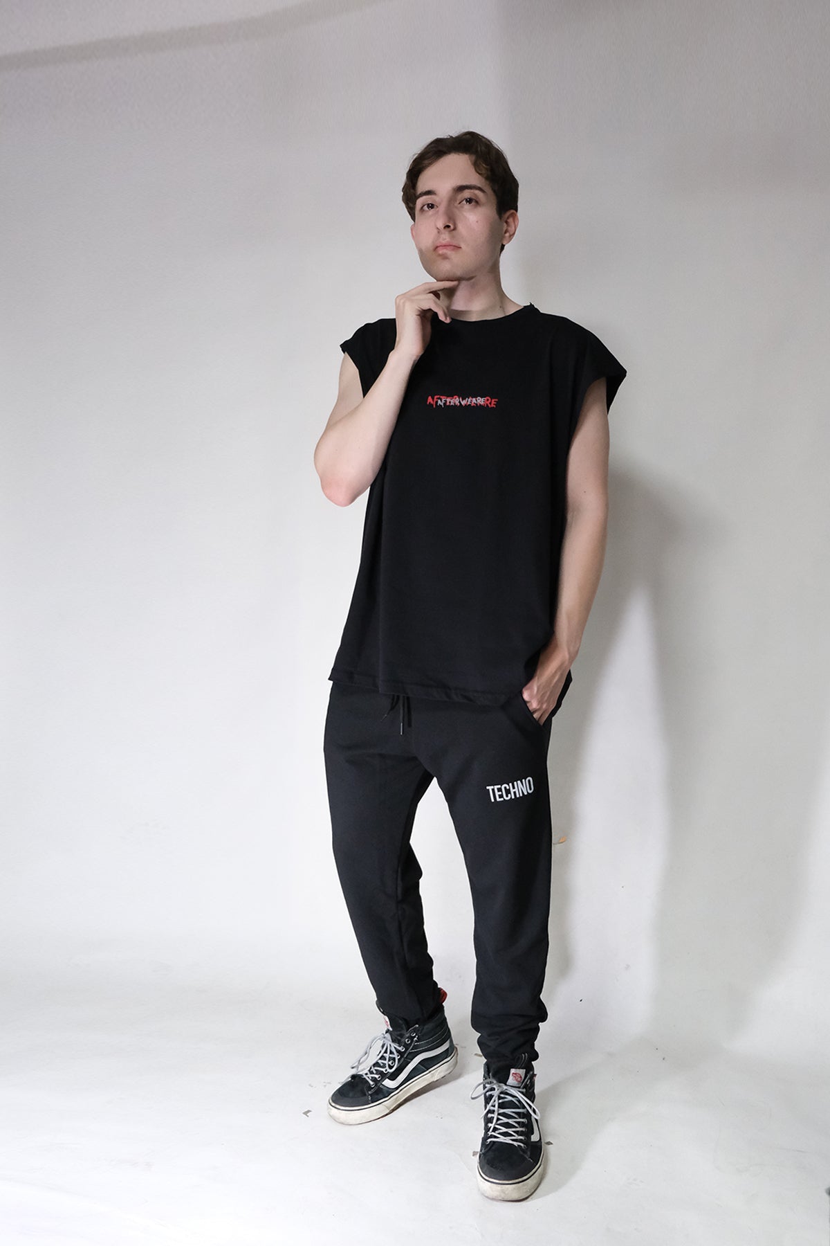 Siyah Sporcu Atlet - Kolsuz Tişört - Came For The Techno Stayed For The Chaos