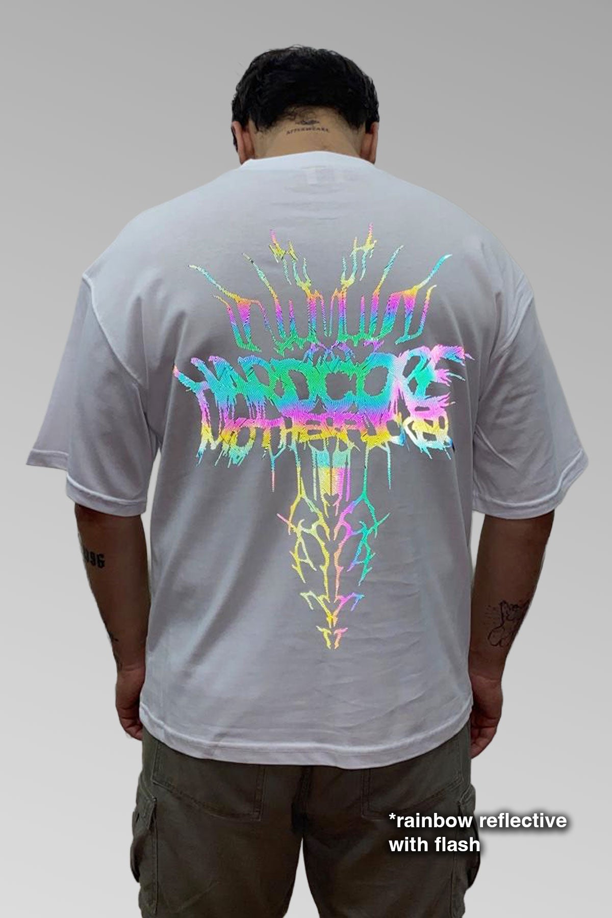 Beyaz Oversize Tişört 'HARDCORE MOTHERFUCKER TRIBAL'