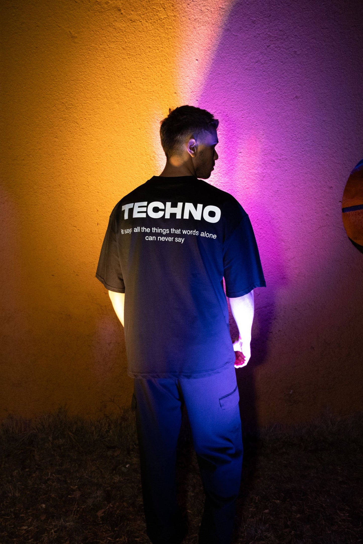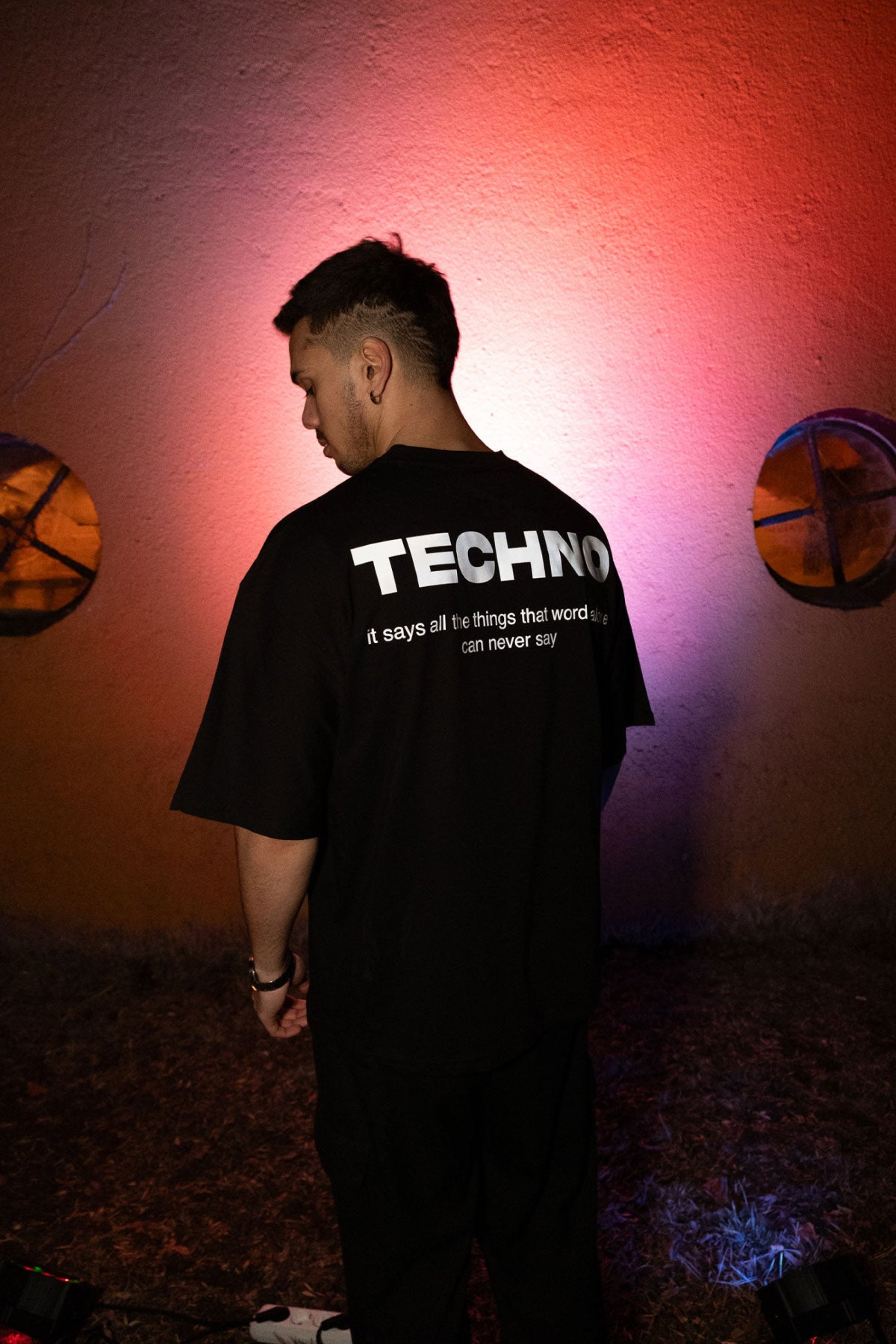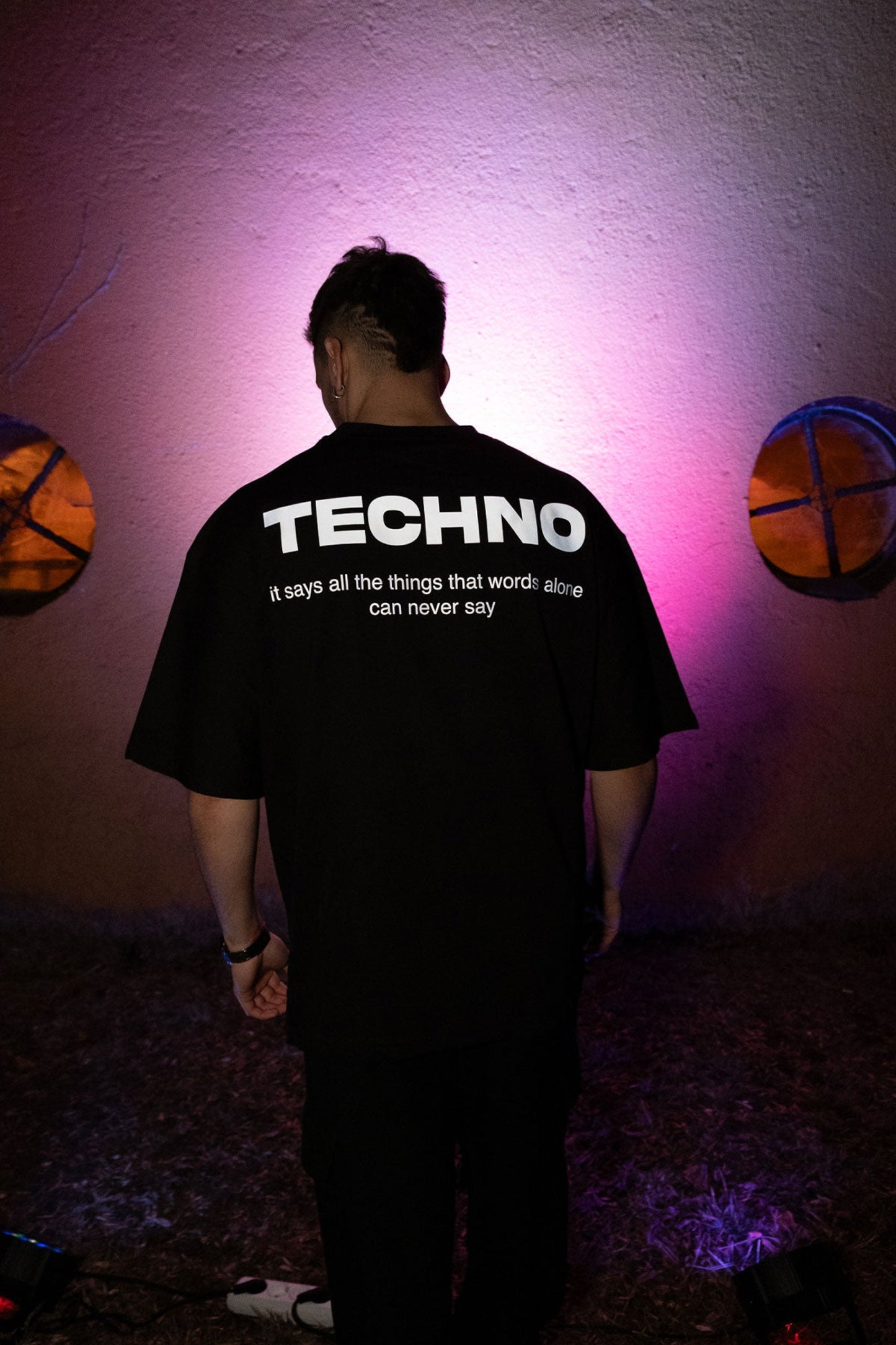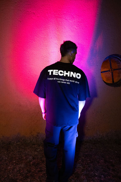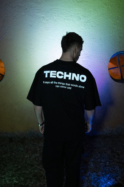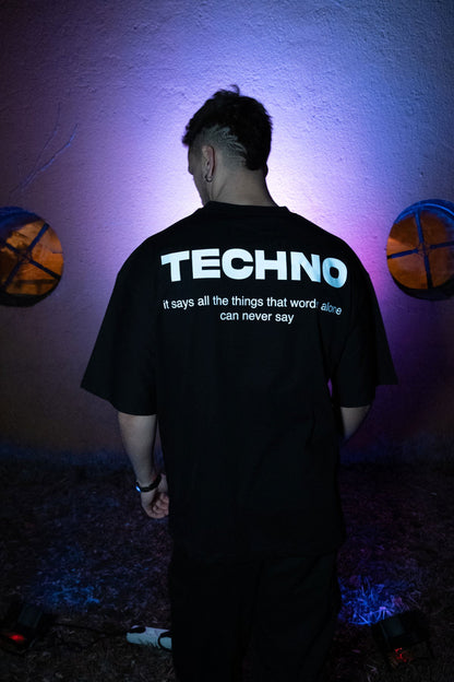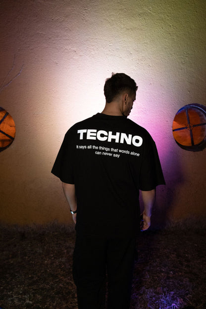 Oversize Black T-shirt 'TECHNO' Oversize Siyah Tişört