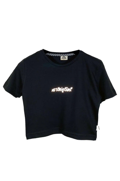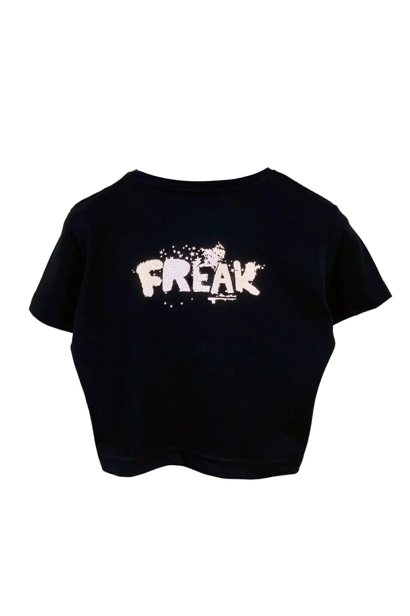 Siyah Crop Tişört - FREAK | Reflective Print Black Crop T-shirt