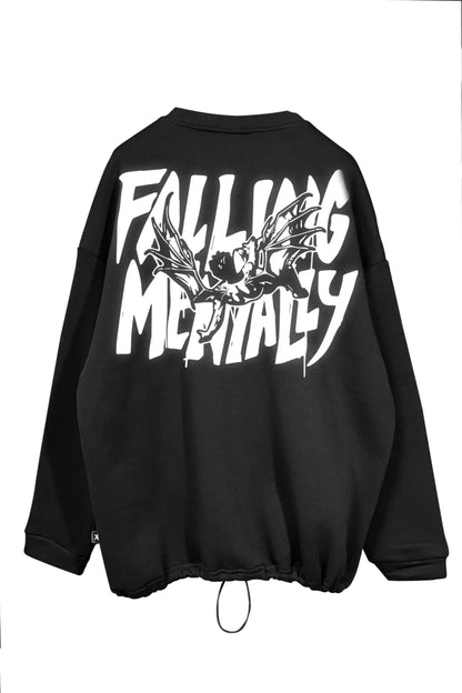 Unisex Siyah Oversize Sweatshirt – 'Falling Mentally' Psy Design