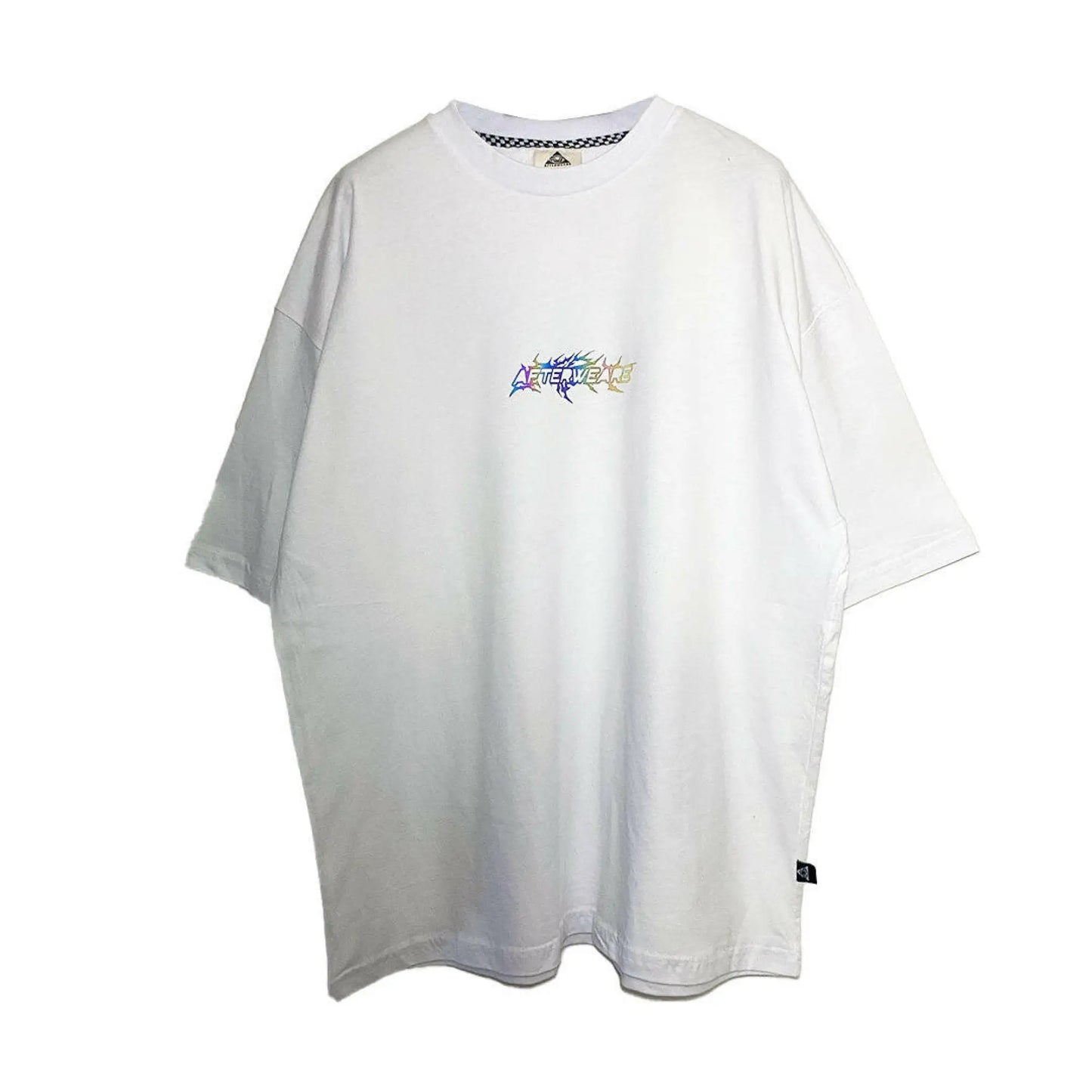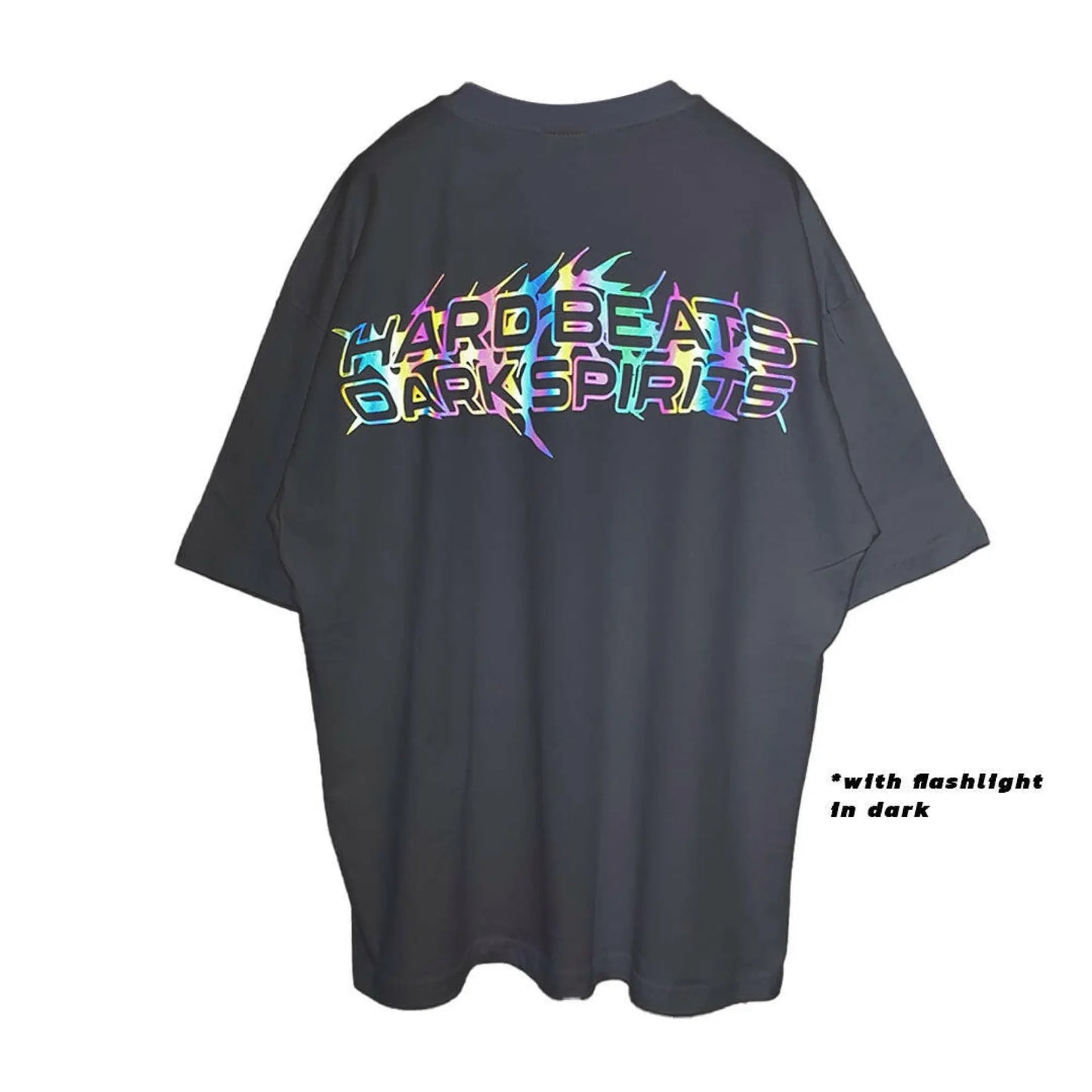 WHITE OVERSIZE T-SHIRT 'HARD BEATS DARK SPIRITS' RAINBOW REFLECTIVE