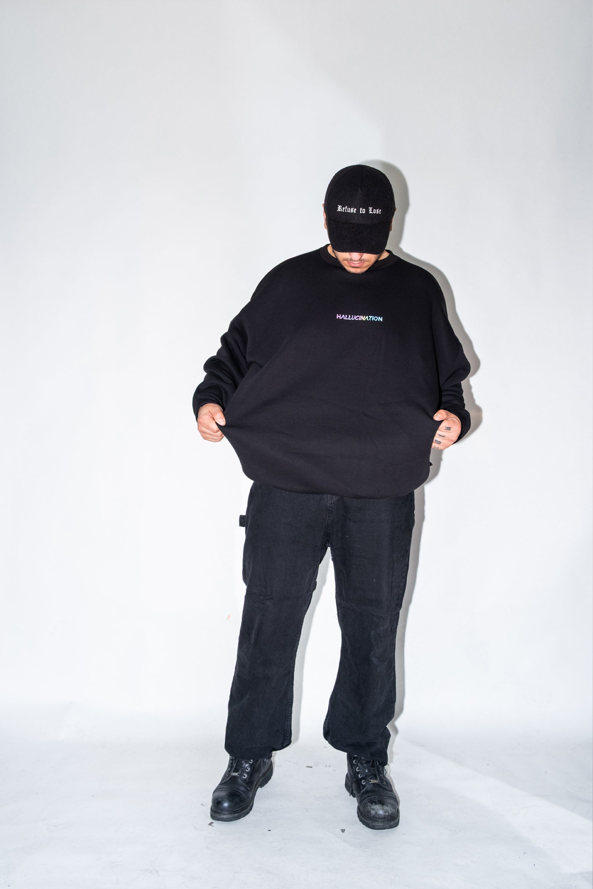 Unisex Siyah Oversize Sweatshirt 'HALLUCINATION'